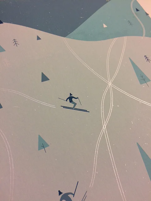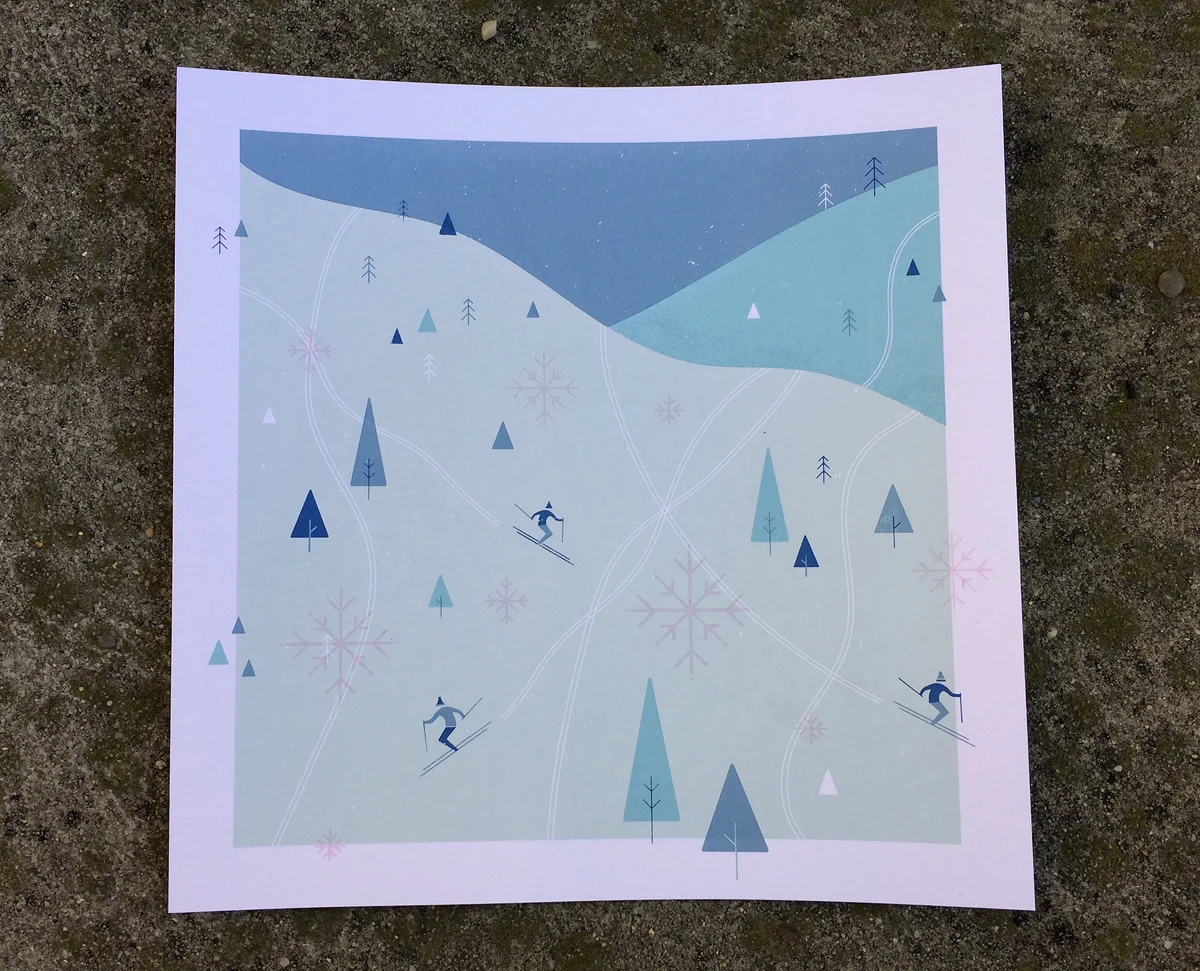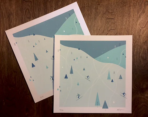 Screen print from "Warm Feelings / Chill Vibes" collaboration with Brittany Slopey. Each print has a hidden color changing layer when exposed to sunlight. Variations are a pearl paper and a flat white paper.